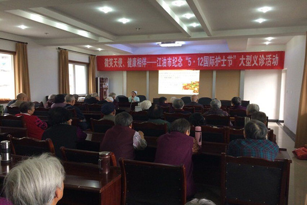 秉承“积极开展延伸护理、护理服务到社区到家庭”的宗旨,江油护理人以在江油大剧院面对广大群众进行大型义诊、在光荣院为老年人进行健康管理知识讲课的形式来纪念国际护士节。