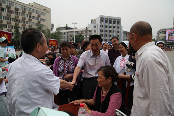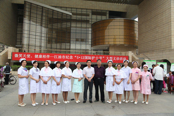江油市卫计局领导高度重视,局长代勇、副局长陈建斌等领导亲临义诊会场指导,并对活动给予高度评价,与义诊护理人员合影留念。