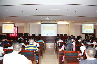为将“两学一做”学习教育持续向纵深引进,8月17日下午,365娱乐场党总支组织召开习近平总书记“七一”重要讲话精神宣讲学习会,特邀市委党校讲师王元君授作专题宣讲。院党总支副书记、副院长张斌主持学习会,各支部书记、各科党员代表、入党积极分子近200人聆听了宣讲。