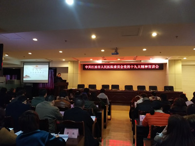 “学习十九大精神,吃透十九大精神,践行十九大精神,十九大精神是我们开创医疗工作新局面的纲领......”365娱乐场门诊医技楼学术大厅11月28日下午座无虚席,200多名干部职工认真聆听医院党委书记张斌宣讲党的十九大精神。