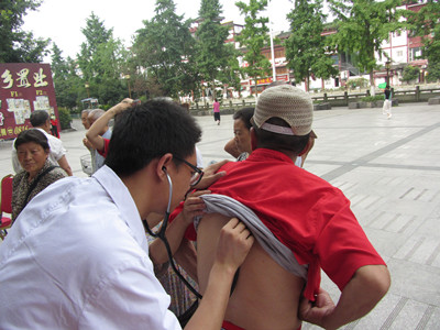 尽管时令没到夏至,但闷热的天气像下了火。早上七点刚过,医院专家已经赶到义诊宣传现场开始忙碌。热浪袭人,现场不少人不时摇动着纸扇,努力扇来些许凉意。人民医院义诊服务台前围满了晨练与过往市民。“大夫,我吃东西时总感觉嗓子里有点堵,还想吐…”“你看胳膊上起了好多红点点,晚上洗热水澡痒的呀那个难受”“大夫,我的脚底板走路稍微久了,就胀疼胀疼的”市民们迫切向医生表达着自己的不适。“不用紧张,阿姨,你再观察一段时间看看,要是继续这样,建议到医院做个食道镜检查。”“老人家,你这属于季节性湿疹,洗澡时水温不要太高,尽量少吃麻辣等刺激性强的食物。”“你脚疼,是由于体表包块造成的,晚上睡前多泡脚,最好加些盐或醋酸进去,要是还消不下去,你直接到医院来找我。”被酷热包裹的医务人员们,脸颊汗珠晶亮,可他们没有半点烦躁,和颜悦色,有问必答,耐心解释,并给出了解决办法。